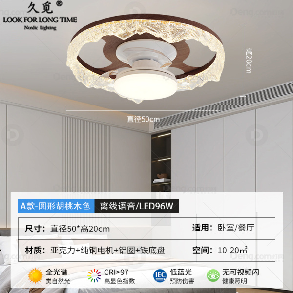 久觅铁艺书房/卧室喷漆磨砂现代简约风扇灯 头数:1头 型号:25006/500圆A款/胡桃木色/离线语音+天猫