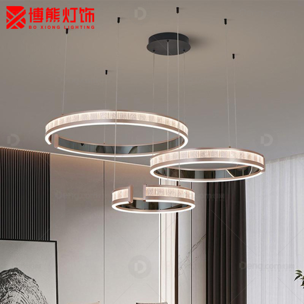 现代简约香槟金铝材+铁艺+亚克力吊灯