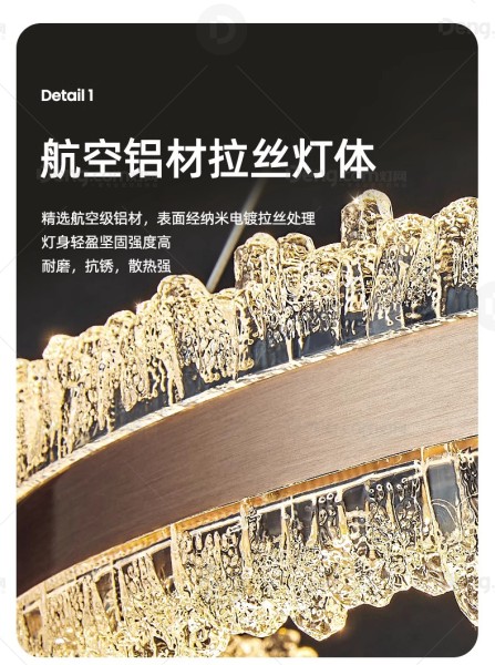 现代简约香槟金铝材+铁艺+亚克力餐吊