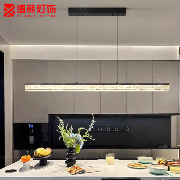 博熊灯饰铁艺餐厅电动冲孔轻奢吊灯 头数:1头 型号:G9052长条餐吊【全光谱】黑色100CM三色变光