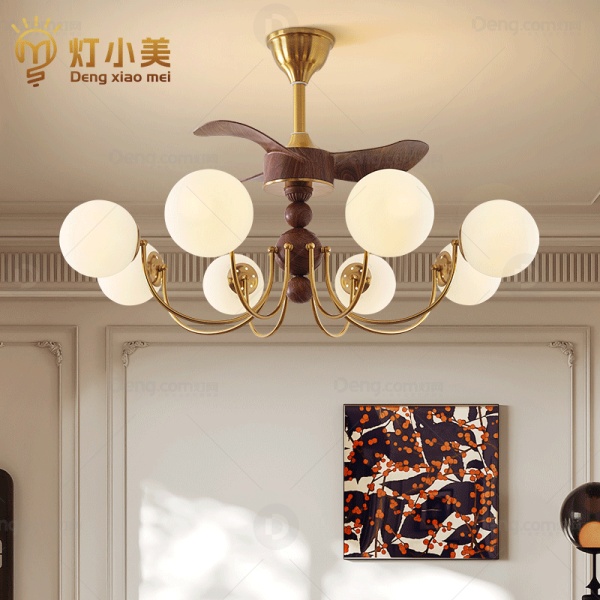 灯小美铁艺书房/卧室其他/other中古风吊灯 头数:8头 型号:9231-8头带风扇