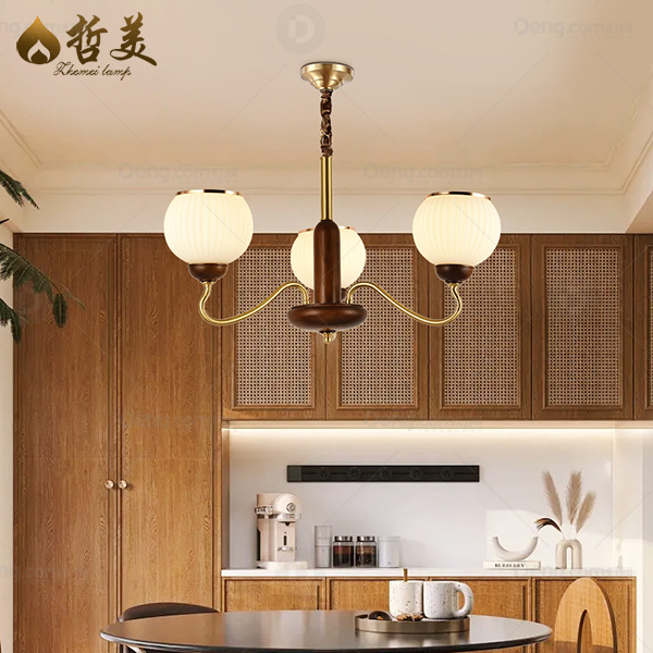 中古风 吊灯 铜+白蜡木 玻璃灯罩