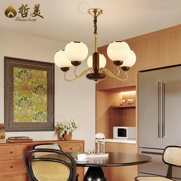 中古风 吊灯 铜+白蜡木 玻璃灯罩