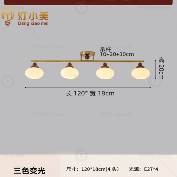 灯小美铁艺餐厅电镀中古风吊灯 头数:4头 型号:9021-C款4头