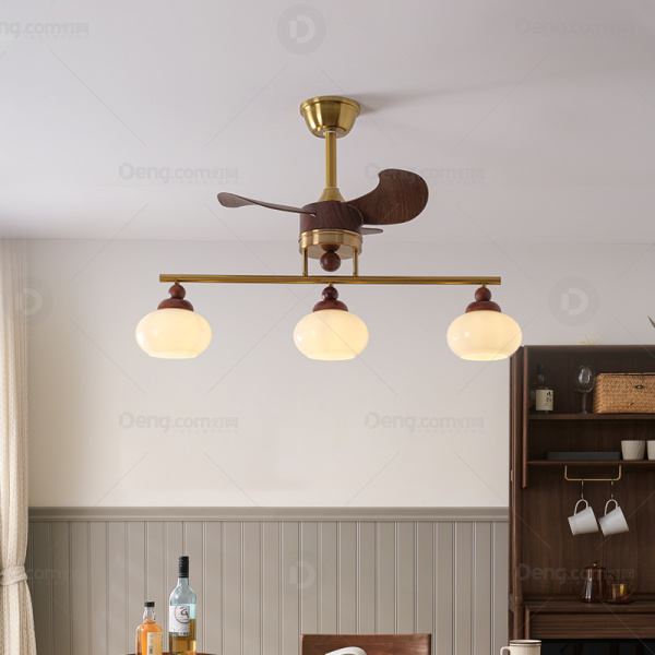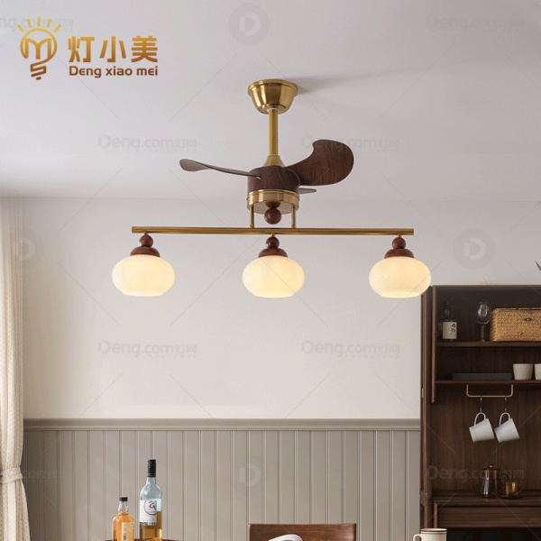 灯小美铁艺餐厅电镀中古风吊灯 头数:3头 型号:9024-3头带风扇