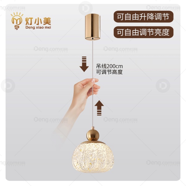 灯小美铁艺书房/卧室电镀中古风吊灯 头数:1头 型号:9270-升降单头吊灯