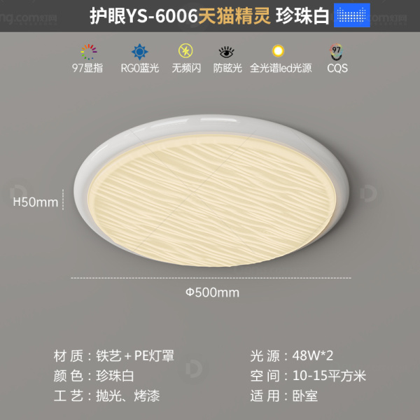 鸿瑞灯饰铁艺书房/卧室喷漆磨砂奶油风吸顶灯 型号:YS-6006-50-珍珠白-天猫