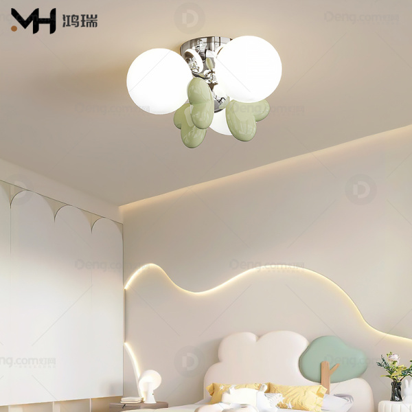 鸿瑞灯饰铁艺书房/卧室电镀北欧/宜家吸顶灯 型号:YS-6001款电镀+绿色-天猫