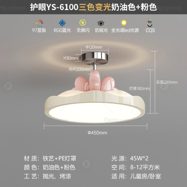 鸿瑞灯饰铁艺书房/卧室喷漆磨砂奶油风吊灯 头数:1头 型号:YS-6100半吊-40款奶咖+粉-三色