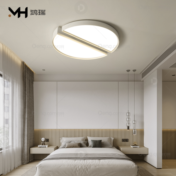 鸿瑞灯饰铁艺书房/卧室喷手漆奶油风吸顶灯 型号:YH-2340-圆三色变光