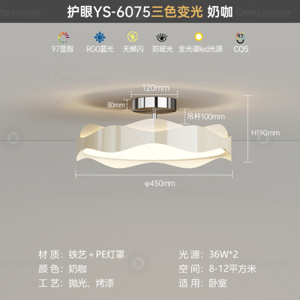 鸿瑞灯饰铁艺书房/卧室喷漆磨砂奶油风吊灯 头数:1头 型号:YS-6075-45款奶咖+铬色-三色