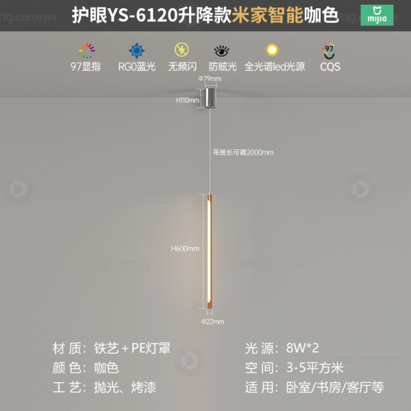 鸿瑞灯饰铁艺书房/卧室喷漆磨砂奶油风吊灯 头数:1头 型号:YS-6120升降款咖色+铬色-mj