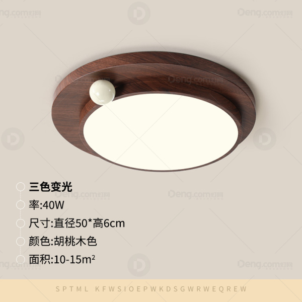 鸿瑞灯饰铁艺书房/卧室其他/other中古风吸顶灯 型号:YH-2660-胡桃木色50圆三色变光