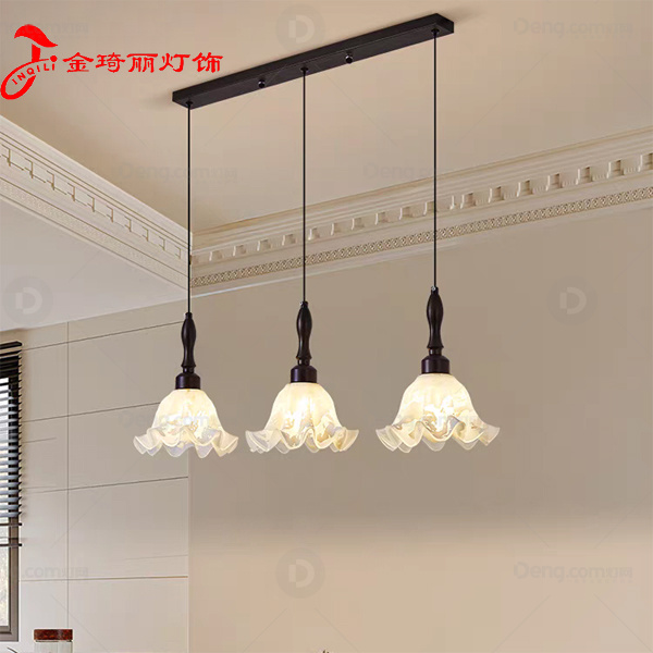 金琦丽玻璃餐厅喷漆磨砂中古风吊灯 头数:3头 型号:20875-3长盘