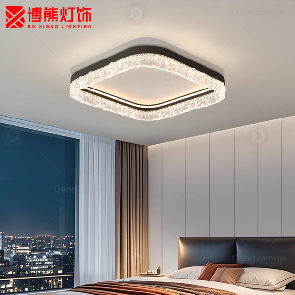 博熊灯饰铝材书房/卧室喷漆磨砂轻奢吸顶灯 型号:X3226冰裂纹正方-50*50*13CM全光谱三色变光