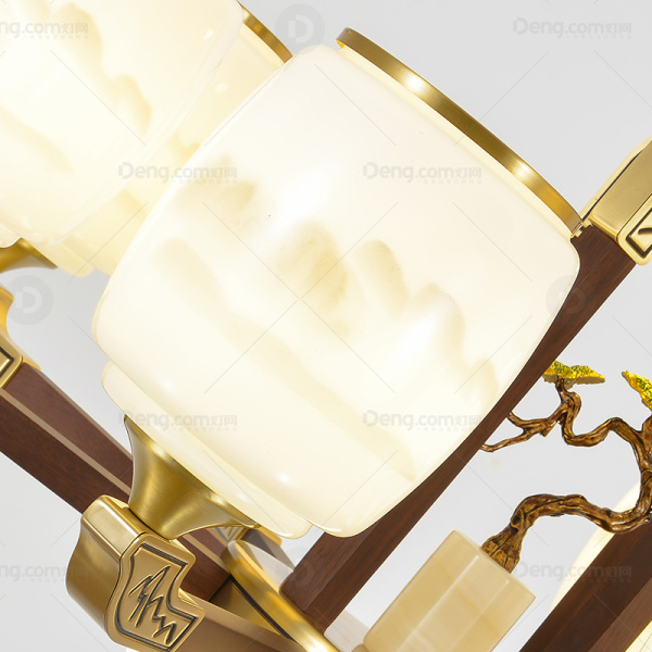 国标黄铜灯臂天然玉石装饰新中式别墅中空吊灯