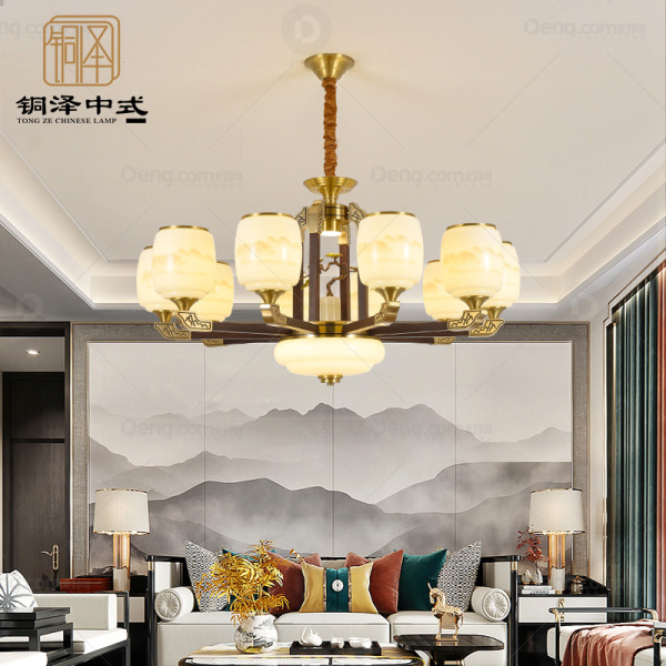 铜泽铜餐厅染色新中式吊灯 头数:10头 型号:yy7220-10头