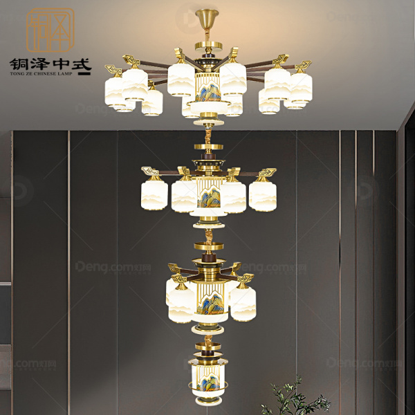 铜泽铜别墅/酒店大堂染色新中式吊灯 头数:24头以上 型号:yy6119-12+8+4+1