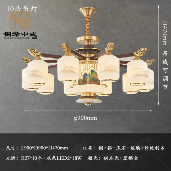 铜泽铜餐厅染色新中式吊灯 头数:10头 型号:yy6119-10头