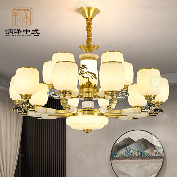 铜泽铜餐厅染色新中式吊灯 头数:15头 型号:yy6102-10+5