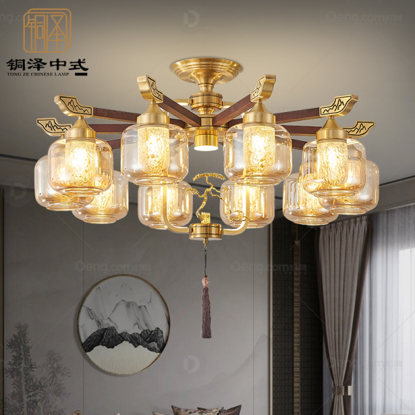铜泽铜餐厅染色新中式吊灯 头数:10头 型号:YY8702-10