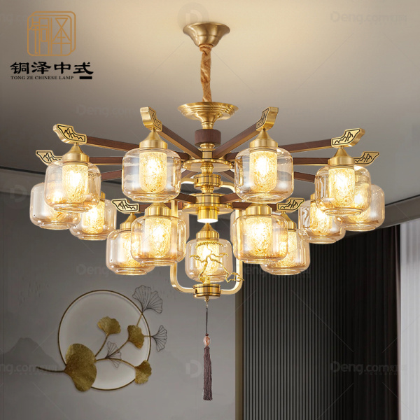 铜泽铜餐厅染色新中式吊灯 头数:15头 型号:YY8702-10+5