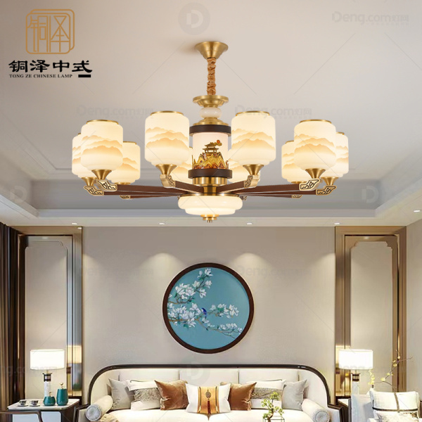 铜泽铜餐厅染色新中式吊灯 头数:10头 型号:yy8082-10头
