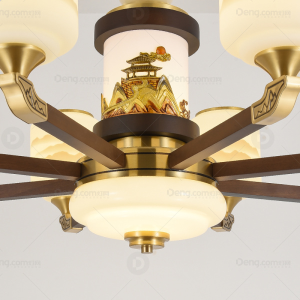 铜泽铜餐厅染色新中式吊灯 头数:18头 型号:yy8082-12+6
