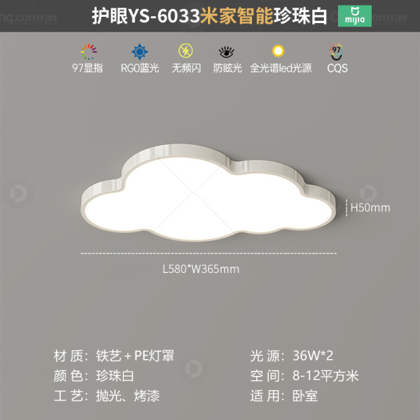 鸿瑞灯饰铁艺书房/卧室喷漆磨砂奶油风吸顶灯 型号:YS-6033款珍珠白-全光谱小爱