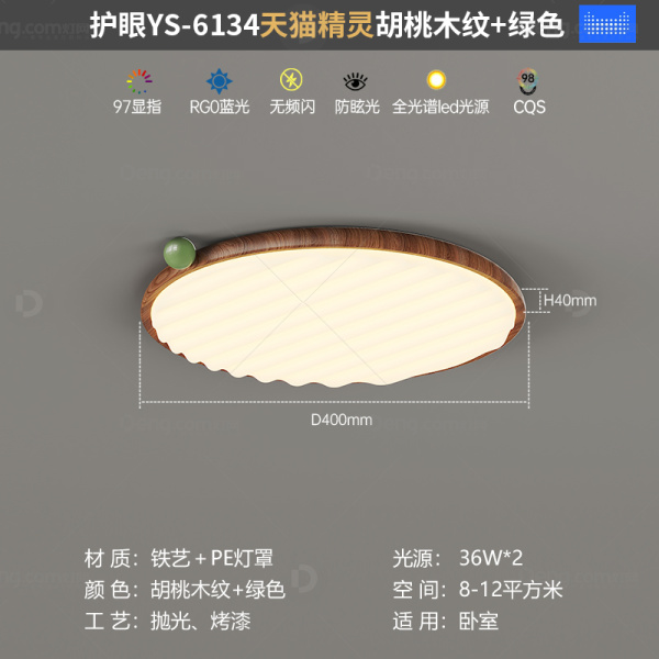 鸿瑞灯饰铁艺书房/卧室其他/other中古风吸顶灯 型号:YS-6134-40款胡桃木纹+绿色-天猫