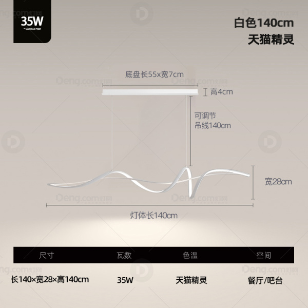 鸿瑞灯饰铁艺餐厅喷手漆现代简约吊灯 头数:1头 型号:YH-2382-140白长盘天猫