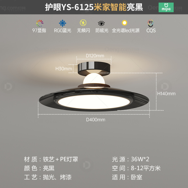 鸿瑞灯饰铁艺书房/卧室喷漆磨砂奶油风吸顶灯 型号:YS-6125-40款亮黑-小爱