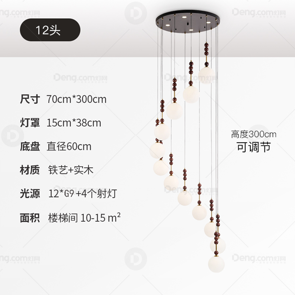 金琦丽铁艺楼梯/拐角喷漆磨砂中古风吊灯 头数:12头 型号:21110-12头