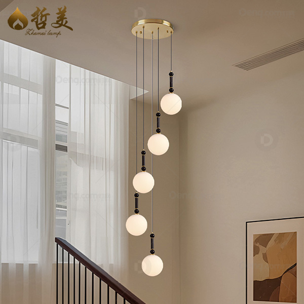 哲美铁艺楼梯/拐角电镀新中式吸顶灯 型号:YY9388-5头