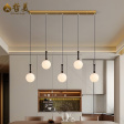 新中式 吸顶餐吊楼梯灯 实木+封闭玻璃灯罩