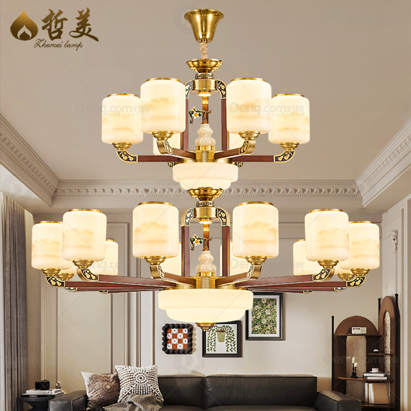 哲美铜高层/复式染色新中式吊灯 头数:18头 型号:GR6628-18头真两层