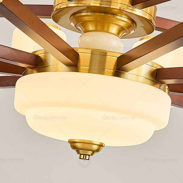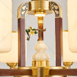 新中式 吊灯 铜+实木灯臂 实木拉杆射灯中柱 防尘罩