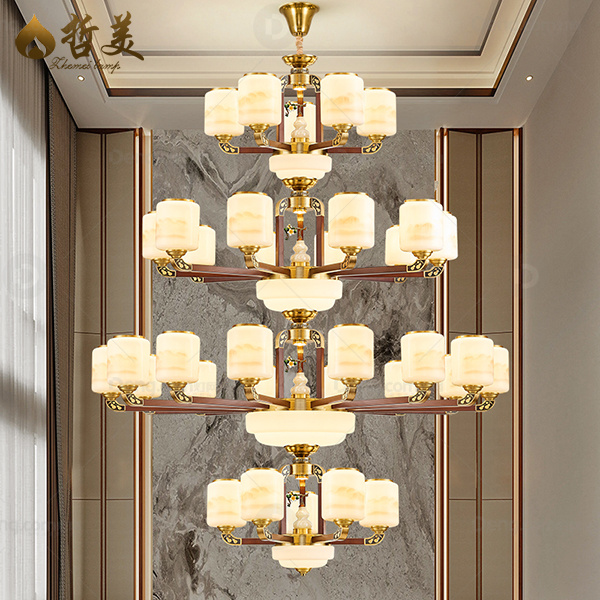 哲美铜别墅/酒店大堂染色新中式吊灯 头数:24头以上 型号:GR6628-35头