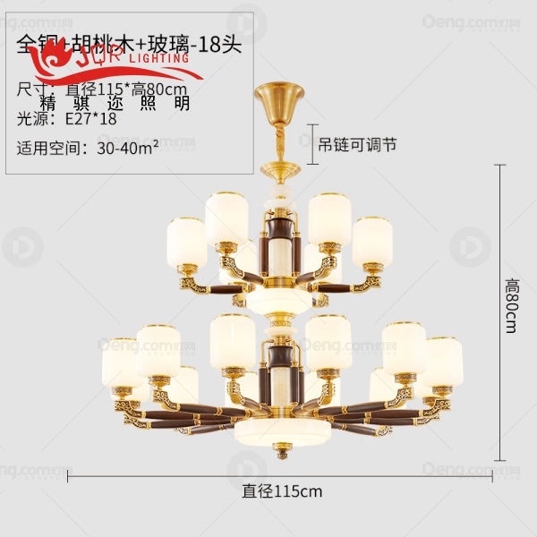 精骐迩铜书房/卧室压铸新中式吊灯 头数:18头 型号:JQR8301-12+6真两层(实心铜头+木)