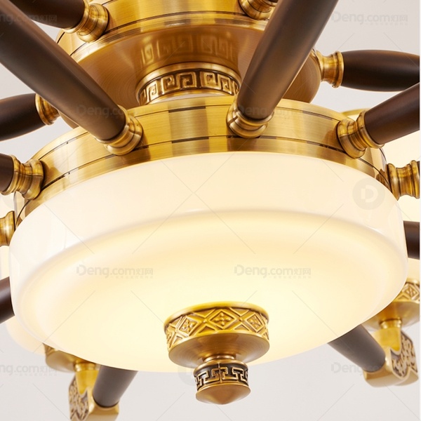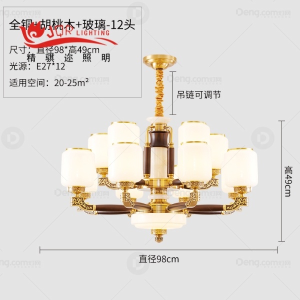 精骐迩铜书房/卧室压铸新中式吊灯 头数:12头 型号:JQR8301-8+4(实心铜头+木)