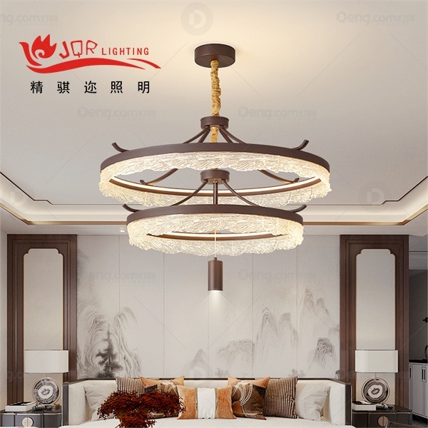 精骐迩铁艺客厅热弯新中式吊灯 头数:2头 型号:JQR3184-600+800【双层】