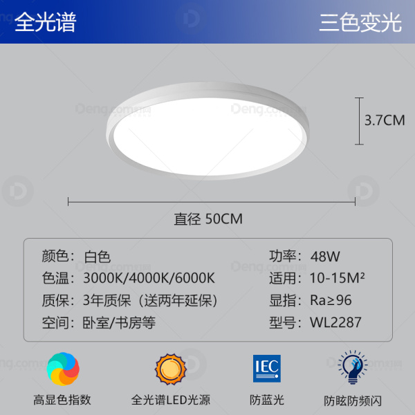 胜腾·家居照明铁艺书房/卧室喷漆磨砂其他吸顶灯 型号:E-WL2287-500-白色-三色调光