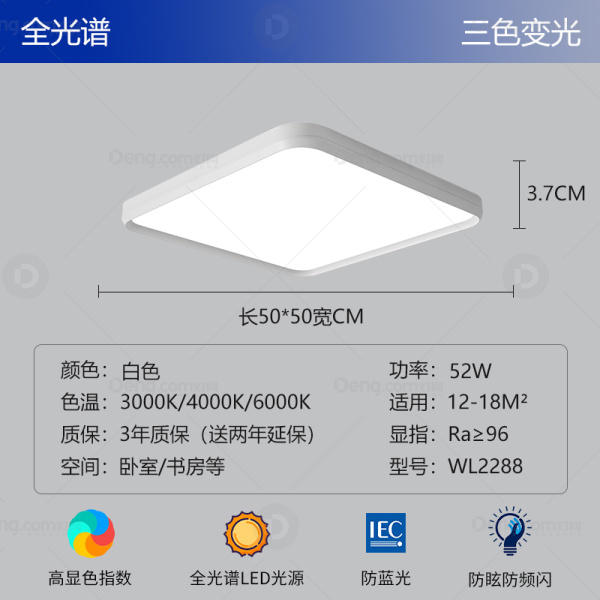 胜腾·家居照明铁艺书房/卧室喷漆磨砂其他吸顶灯 型号:E-WL2288-500*500-白色-三色调光