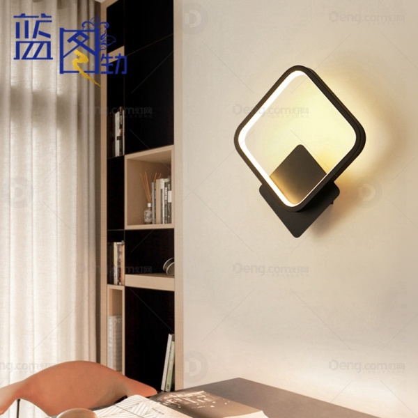 蓝图生力铝材书房/卧室喷漆磨砂现代简约壁灯 头数:单头 型号:3002-方形黑色暖光