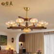 哲美实木客厅喷漆磨砂中古风吊灯 头数:10头 型号:LHY6825-10头风扇灯
