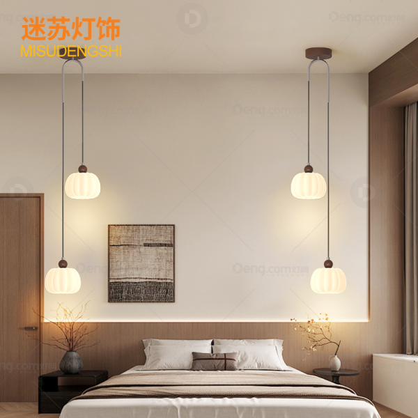 迷苏灯饰铁艺书房/卧室锻打中古风吊灯 头数:2头 型号:1804桃木色2头-无极