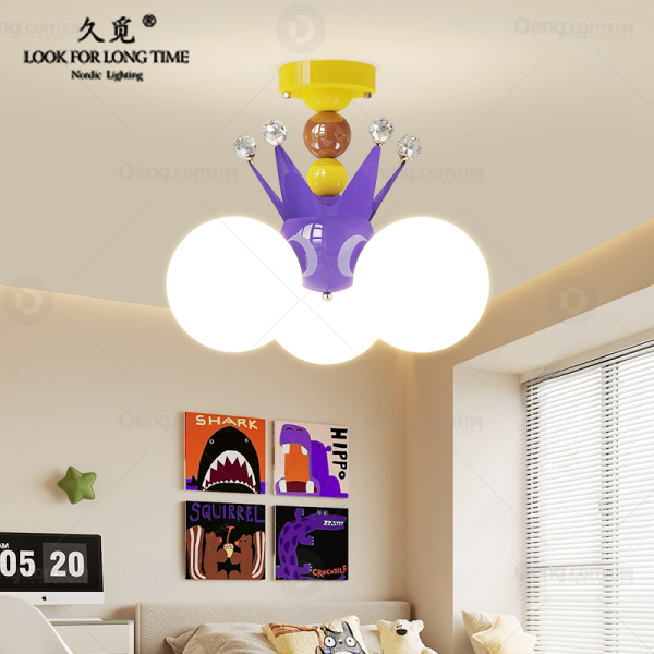 久觅铁艺儿童房喷漆磨砂儿童/卡通吸顶灯 型号:HG-6162皇冠/宝蓝+黄色+咖色/全光谱三色