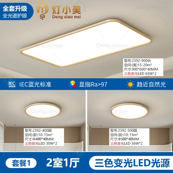 灯小美铝材客厅中古风套餐 型号:2392-原木色-套餐1三色光