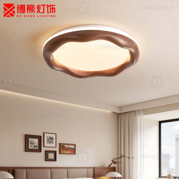 博熊灯饰PVC书房/卧室喷漆磨砂中古风吸顶灯 型号:胡桃木色X3239-50*8CM-全光谱三色变光