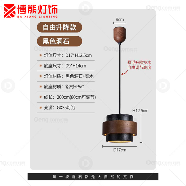 博熊灯饰石材书房/卧室磨花中古风吊灯 头数:1头 型号:黑色JD5018-17*12.5CM单头-升降款-中性光